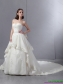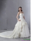 2015 Laced Beaded White Wedding Dresses with Chapel Train MDCWMDWD041