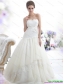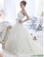 2015 Ruffled White Strapless Wedding Dresses with Sash and Bownot MDCWMDWD013