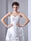 Simple while stunning! This white gown with two spaghetti straps is characterized by embellished beadwork and exquisite appliques that can show your natural waistline. The floor length skirt is full of glamorous pick-ups to create a pretty bruch train, and a lace up closure completes this unique design. Please don't miss this rare chance to show your beauty!