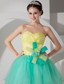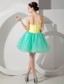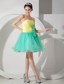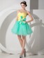 Here are the words coming to mind to describe the feeling of seeing this dress at the first sight: fun, flirty and fabulous. This two-toned design is full of freshness and natural beauty. It is made of a fancy chiffon material that ensures a great, comfortable fit and features a strapless bodice with a sweetheart neckline and glamorous ruchings. The sophiscated decoration in the waist area embelished with chic roses that create a very dramatic and lovely effect in the light. The short skirt in many layers with a zipper up back twirls and sways when you move. This is a really versatile dress that can be dressed up any way you like.