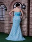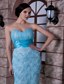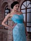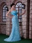 Create your own modern day fairy tale in this stunning aqua blue prom dress.It features a strapless bodice with a sweetheart neckline and lovely ruches throughout.The ruched wasistband with a broach in the middle contours your curve. The floral embellishment skirt adds the charm.A hidden zipper makes for easy off and on and secures the dress in place.A luxurious prom dress perfect for girls who are longing for a royal party.