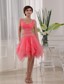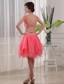 Show off your fun and playful side at your prom in this super sexy straps party dress. The sweetheart bodice covered with exquisite ruchings, beaded straps, and the beaded waist contours your curves as well. Tiered short skirt with asymmetrical hemline implies that you're ready to party. The backless completes the look. You will be the sexy princess when you wear this watermelon dress!