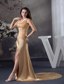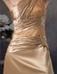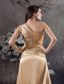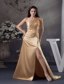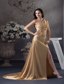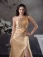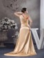 Champagne Beaded Slit Prom Dress with One Shoulder Court Train MDC4WDSS229