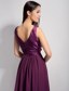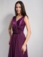 Classical Dark Purple A-line V-neck Brush Train Bridesmaid Gown MDCHLEN0111T09