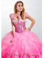 Elegant Pink Organza Open Front Quinceanera Jacket with Ruffels and Beading
