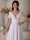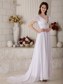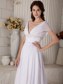 Three words come to mind to describe this dress: elegent, romantic and fabulous. Butterfly sleeves are a design element that you don't often see on formal gowns, but the effect they create can be quite stunning, as this beautiful dress clearly shows. It has a lovely V neck with ruched fabric on the waist and flattering butterfly sleeves. The dainty waistband is accented with pretty rhinestones that create a elegant effect with the ruched fabric. The beautiful fabric is attached and flows freely down to cascade to floor, creating a stunning silhouette. The layer skirt is complete with a sweep train. A flattering and high class design–perfect for those extra special occasions.