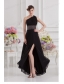 Empire One Shoulder Black Prom Dress with Beading and High SlitEmpire One Shoulder Black Prom Dress with Beading and High SlitEmpire One Shoulder Black Prom Dress with Beading and High SlitEmpire One Shoulder Black Prom Dress with Beading and High Slit