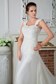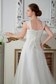 You will be the most bride in this gorgeous sweet dress! This straps creation is accented with a modified sweetheart neckline and pleated bodice with fine embroidery that sets off your splendor. The skirt shows your lovely look cascading to the floor overlayed a tier of sheer tulle edged lace appliques which makes the dress refineness. You will have a most beautiful wedding in this unparalleled wedding dress!