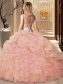 Fitting Peach Organza Lace Up Scoop Sleeveless Floor Length Sweet 16 Quinceanera Dress Beading and Ruffles and Pick UpsFitting Peach Organza Lace Up Scoop Sleeveless Floor Length Sweet 16 Quinceanera Dress Beading and Ruffles and Pick UpsFitting Peach Organza Lace Up Scoop Sleeveless Floor Length Sweet 16 Quinceanera Dress Beading and Ruffles and Pick Ups