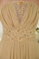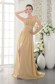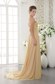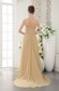 The top bodice is desiged exquisitely with the ruched bust and meticulous beaded floral embroidery appliques on the waistband and V neckline added a sheer tulle. The long skirt has a small train and a seductive and sexy slit. The back features a corset-style closure that ensures a perfect fit, and a flying away streamer, which can draw much attention. Such a perfect dress, why not bring it to your party!