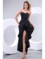 Black Column Sweetheart Ruching High Slit Prom Dress