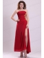 Column Strapless Appliques Ankle-length Chiffon Prom Dress with Side Zipper