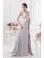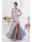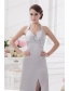 Column Halter top High Slit Beading Prom Dress in Light Grey