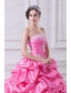 Pretty Rose Pink Strapless Appliques 2014 Quinceanera Dress with Appliques