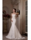 Mermaid Lace Strapless Brush Train Appliques Wedding Dress