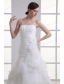 Strapless Hand Made Flowers Ruffled Layers Ruching Court Train Wedding Dress