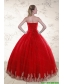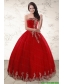 Elegant Red Strapless 2015 Quinceanera Dresses with Appliques