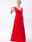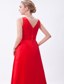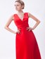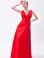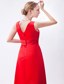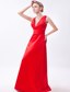 Low Cut V-neck Red Floor-length Sleeveless Bridesmaid Dress