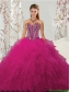 Unique and Pretty Beading and Ruffles Dresses for Quince in Fuchsia for 2015