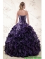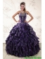 Unique Purple Sweetheart Floor Length Quince Gowns Embroidery and Ruffles