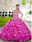 2015 Affordable Fuchsia Dress for Quince with Beading and Pick Ups