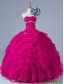 2015 Popular Strapless Beaded Quinceanera Gowns in Fuchsia