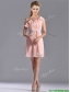 Latest Beaded and Ruffled Pink Bridesmaid Dress with Criss Cross