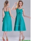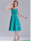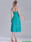 Spaghetti Straps Ruched and Belted Turquoise Bridesmaid Dress in Tea Length