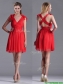 Exclusive V Neck Criss Cross Bridesmaid Dress with Ruching and Bowknot