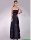 New Classical Black Ankle Length Bridesmaid Dress with Hot Pink Belt