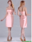 New Short Strapless Knee Length Pink Bridesmaid Dress with Hand Crafted and Beading