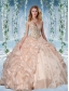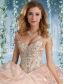 Fashionable Beaded Decorated Cap Sleeves Quinceanera Dress with Deep V Neck