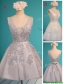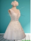 Gorgeous White Deep V Neckline Bridesmaid Dress with Appliques and Belt