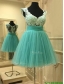 Beautiful Deep V Neckline Short Bridesmaid Dress with Lace