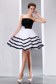 New Black and White A-line Strapless Knee-length Prom Dress with Flowers