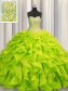 Visible Boning Sleeveless Beading and Ruffles Lace Up Vestidos de Quinceanera