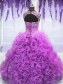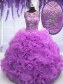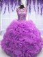 Lilac Ball Gowns Scoop Sleeveless Organza Floor Length Lace Up Beading and Ruffles Sweet 16 Quinceanera Dress