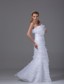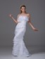 Organza Column Strapless Flowers and Ruffled Layers Bridal Dress
