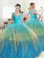 Designer Straps Floor Length Multi-color Sweet 16 Quinceanera Dress Tulle Sleeveless Beading and Ruffled Layers