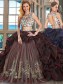 Traditional Pick Ups Scoop Cap Sleeves Brush Train Backless 15 Quinceanera Dress Burgundy Organza and Tulle