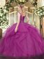 Sleeveless Tulle Floor Length Lace Up Sweet 16 Dress in Olive Green with Beading and Ruffles