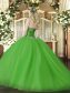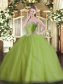 Olive Green Ball Gowns Tulle Sweetheart Sleeveless Beading Lace Up Quinceanera Dresses Brush Train