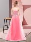 Superior Sleeveless Tulle Floor Length Lace Up Damas Dress in Watermelon Red with Beading