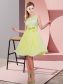 Decent Scoop Sleeveless Court Dresses for Sweet 16 Knee Length Lace and Bowknot Yellow Green Chiffon