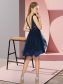 Best V-neck Sleeveless Damas Dress Knee Length Appliques and Ruffles Navy Blue Tulle