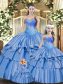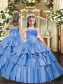 Baby Blue Sweetheart Lace Up Beading and Ruffles Sweet 16 Dress Sleeveless