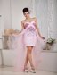 Baby Pink Column Beading Decorate Celebrity Dress High-low Style