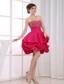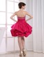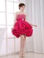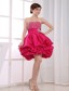 Strapless Beaded Puffy Bottom Hot Pink Taffeta Mini-length Cocktail Dress
