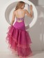 Fuchsia Ruches Ruffles Cocktail Dress with Cutout Back Asymmetrical