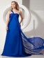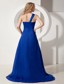 Ruched One Shoulder Brush Train Royal Blue Formal Dresses for Dama